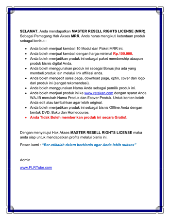 - Pembeli mendapatkan hak penuh (reseller license) untuk menjual ulang dan menyimpan 100% keuntungannya.